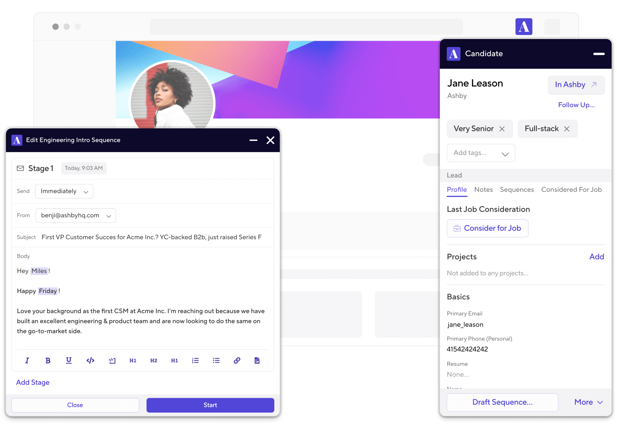 Use the Ashby Chrome Extension to source leads directly from LinkedIn